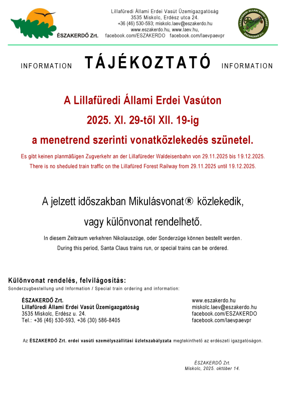 A Lillafüredi Kisvasútért Alapítvány weboldala