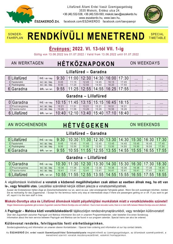 A mai nap kettős évforduló a LÁEV életében. A százéves jubileum mellett ma történt 10 éve, hogy Miskolc-Dorottya utca és Garadna között első menetrend szerinti vonatát továbbította az Mk48 2021 pályaszámú dízel-villamos hibrid mozdony. A korszakos átalakításon átesett mozdonyt a visszaúton az országos sajtó képviselőinek is bemutatta Mátrai Imre, a LÁEV akkori üzemigazgatója.